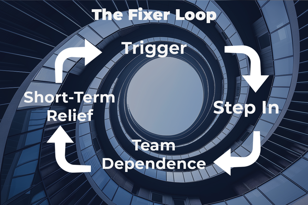 So even after the business stabilizes… even after your team grows… even after you’ve hired smart people… your instincts still reach for the same move, that fixer reflex of stepping in to save, fix, or keep from breaking. The habit that once kept the wheels turning becomes the habit that silently stalls your team.
